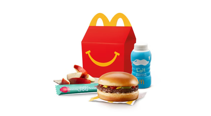 Notre Hamburger classique est préparé avec du bœuf canadien à 100 % juteux et délicieux, et garni de cornichons, d’oignons sucrés, de ketchup et de moutarde, le tout servi dans un petit pain fraîchement grillé. Servi avec des tranches de pomme ou des frites, miniformat/petit format, un tube de yogourt et une boisson, petit format/format enfant (selon le cas).