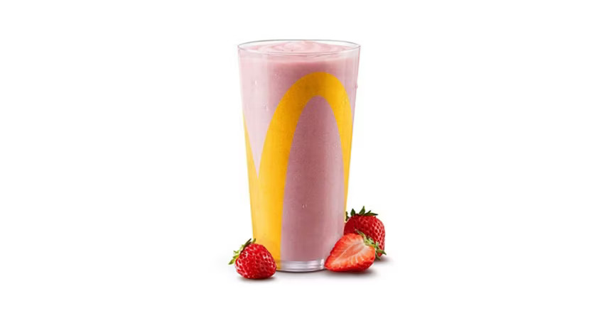 Ingrédients: Sucres (sucre, sirop de glucose), Eau, Fraises, Glycérine, Arôme naturel (origine végétale), Jus de légumes, Pectine, Acide citrique, Bêta-carotène, Gomme de xanthane, Sorbate de potassium, Benzoate de sodium, Chlorure de calcium, Mono- et diglycérides. Peut contenir du lait et de faibles quantités dautres saveurs de Lait ultra-frappé offertes dans le restaurant.